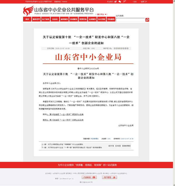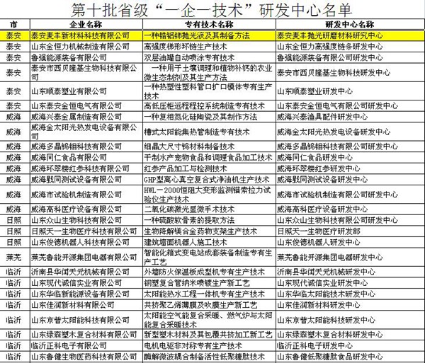 近日,《山東省中小企業(yè)局文件(魯中小企局字[2015]64號(hào))》公布了省級(jí)第十批 “一企一技術(shù)”研發(fā)中心和第八批“一企一技術(shù)”創(chuàng)新企業(yè)名單,泰安麥豐新材料科技有限公司通過(guò)市局推薦、省局初審和專家委員會(huì)嚴(yán)格評(píng)審,成功獲評(píng)省級(jí)“一企一技術(shù)”研發(fā)中心。